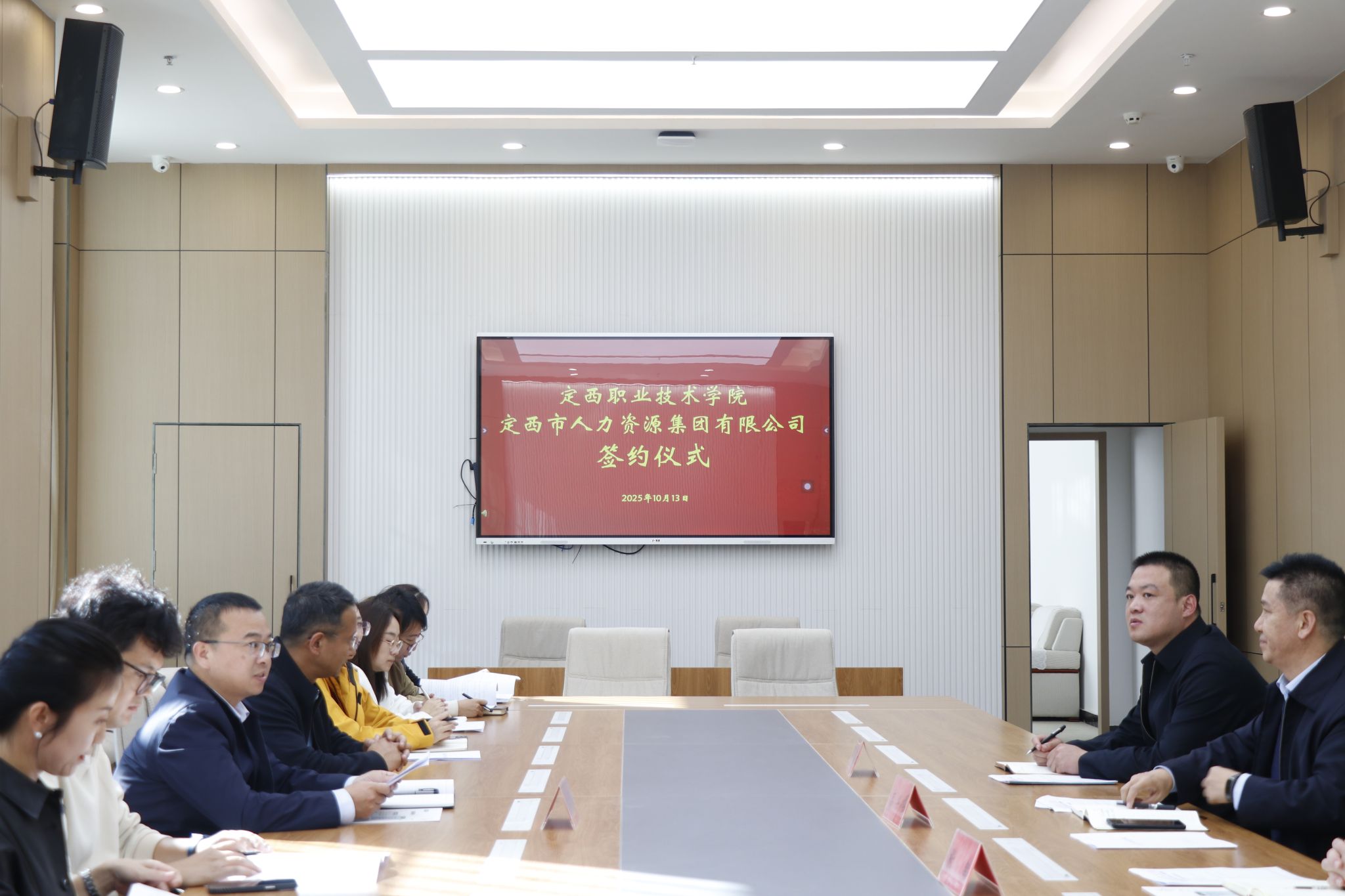 10月13日,定西职业技术学院与定西市人力资源集团公司校企合作签约仪式在学院内隆重举行,标志着双方在人才共育、产教融合等领域建立起长期、紧密的战略合作伙伴关系,共同开启校企协同发展新篇章。