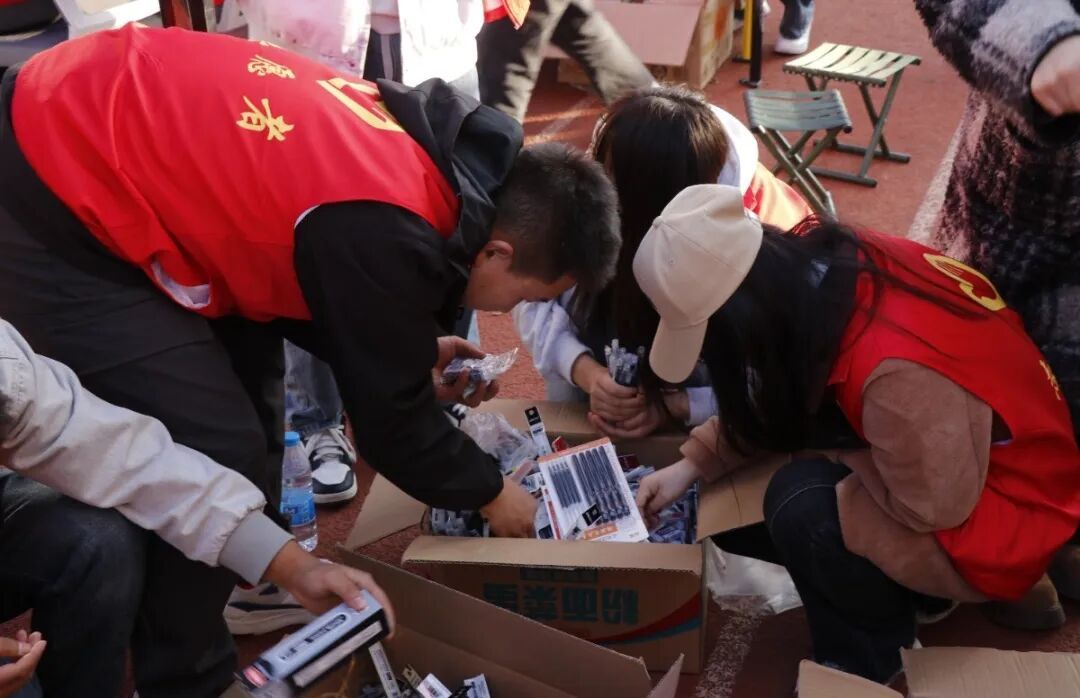 活动当天,志愿者们提前半小时到场,分工明确、配合默契——布置场地、搬运物资、悬挂横幅、整理登记表格,整个过程井然有序。活动期间,捐赠现场气氛热烈,师生踊跃参与。志愿者们耐心引导捐赠者填写信息、仔细检查物品质量,并对捐赠物资进行分类、登记与打包。