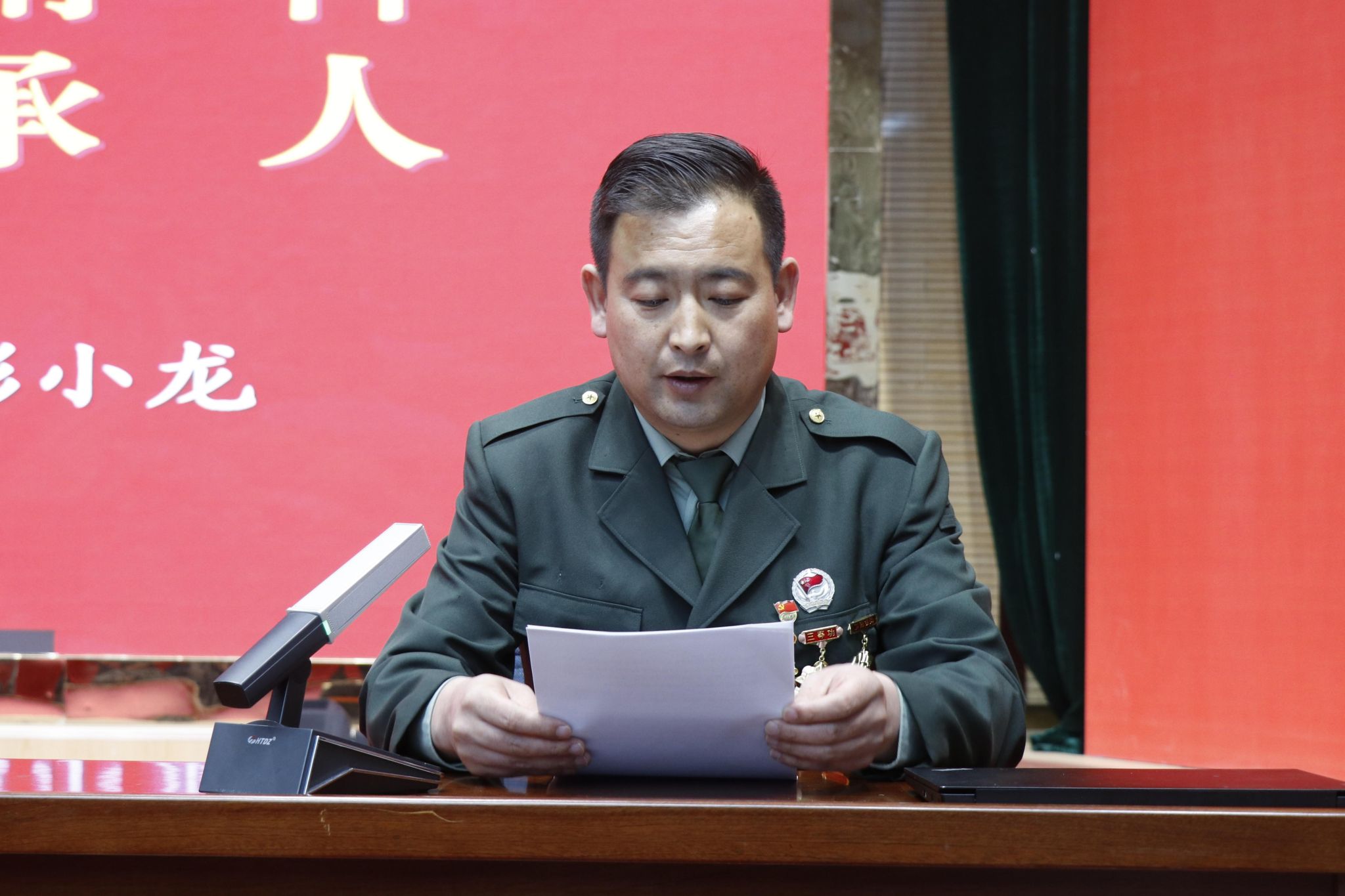 定西市老兵宣讲团成员、二等功臣彭小龙以亲身经历还原了喀喇昆仑山“生命禁区”中的戍边岁月。他讲述了2020年中印加勒万河谷冲突中,自己和战友在海拔5000多米、含氧量不足平原30%的极寒之地,以血肉之躯捍卫国土的壮烈故事。“清澈的爱,只为中国”——这句戍边烈士的战斗口号,也成为他整场宣讲的精神注脚,让在场师生无不动容。