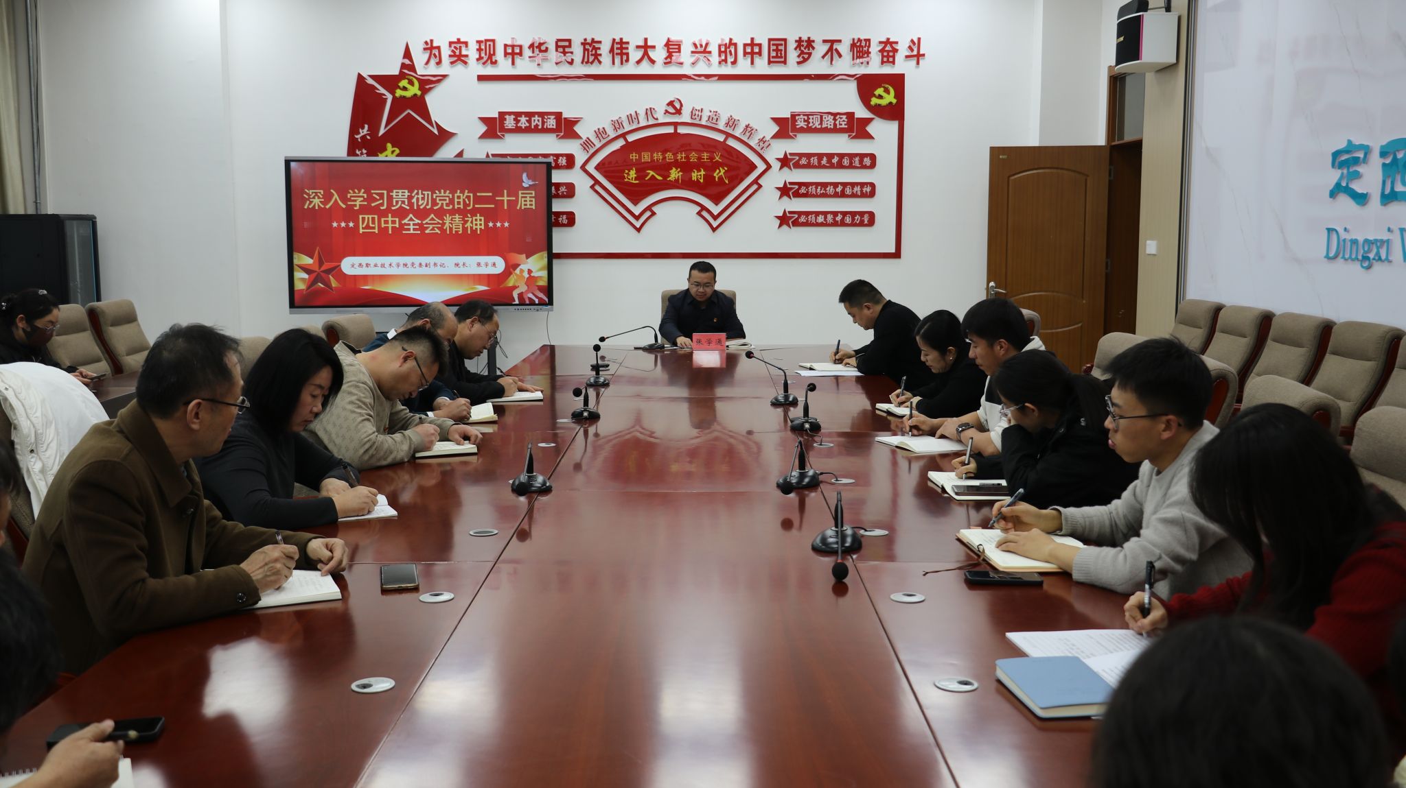 12月8日,定西职业技术学院党委副书记、院长张学通与畜牧兽医学院教职工齐聚,召开党的二十届四中全会精神宣讲会暨发展座谈会,以全会精神为指引,共商学院发展之计。