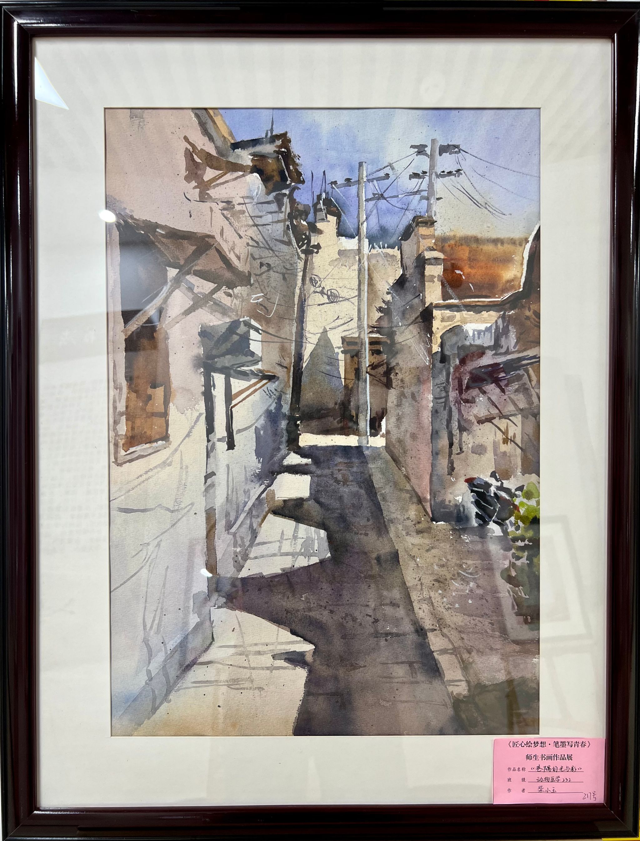 展览现场,墨香四溢,一幅幅精美的水墨作品整齐陈列,师生共同驻足观赏。