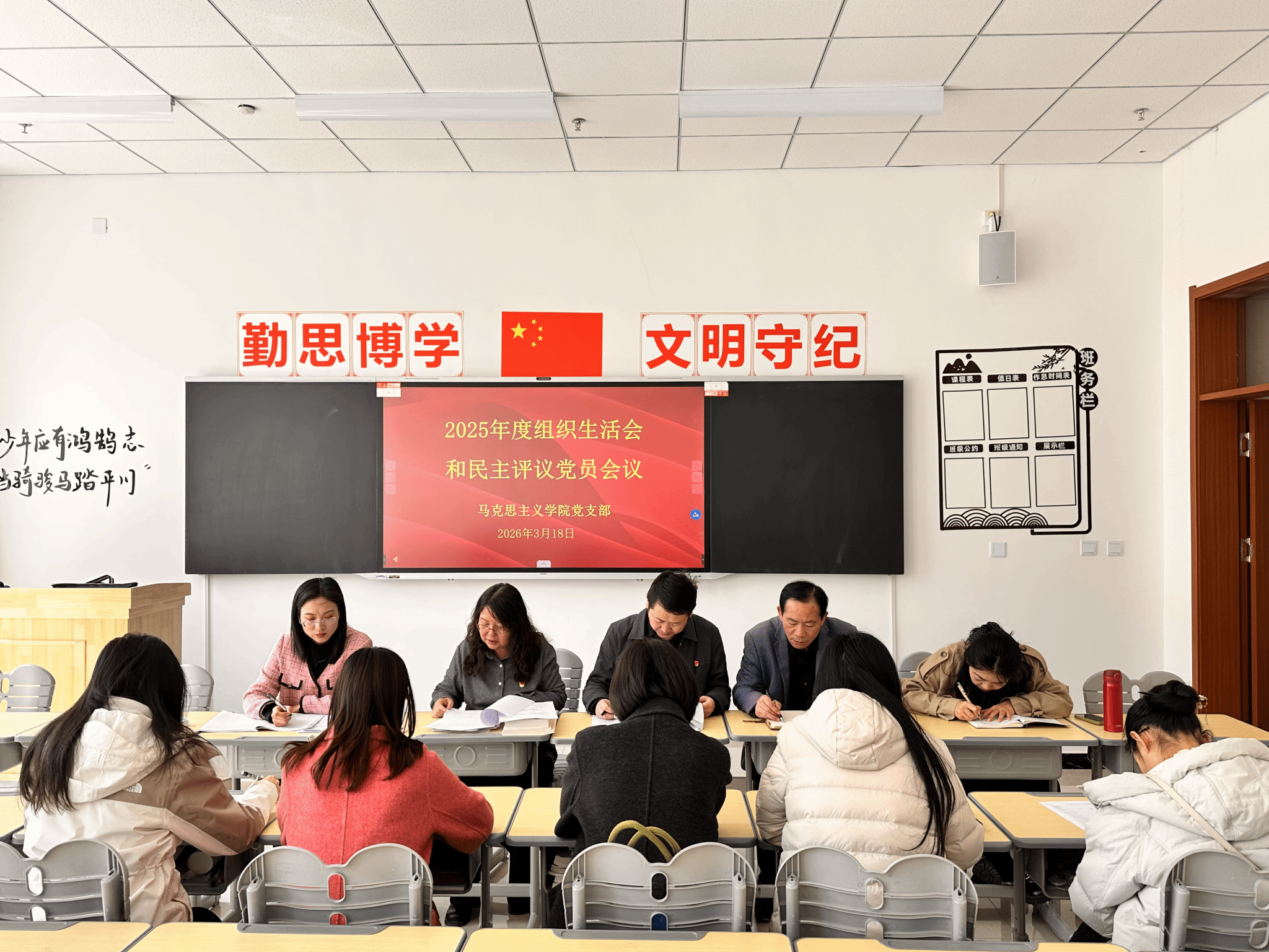 3月18日,定西职业技术学院马克思主义学院党支部召开了2025年度组织生活会和民主评议党员大会。校党委指导组仲军、王凤舞同志到会指导,会议由支部书记王调兰主持。