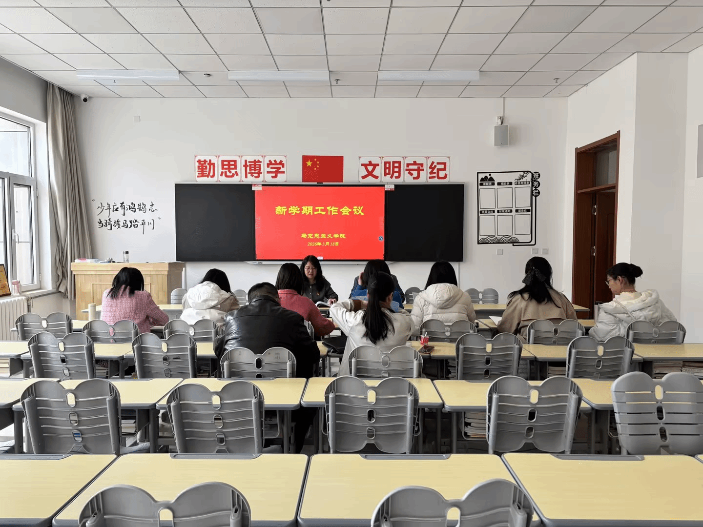 为深入贯彻学校新学期工作部署,统筹推进学院各项事业高质量发展,3月18日,马克思主义学院召开2026年春季学期开学工作部署会议。会议全面总结上一阶段工作成效,深刻分析当前面临的形势与挑战,系统部署本学期重点任务,全体教职工参会,会议由学院院长许友强主持。
