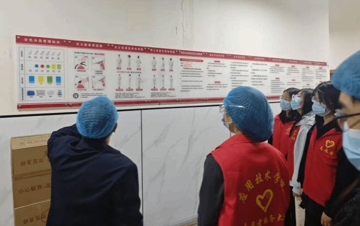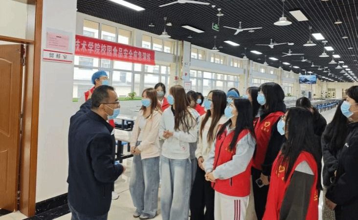活动伊始,学生代表严格遵循后厨准入管理规定,统一规范佩戴一次性口罩、灭菌帽及鞋套,完成晨检核验后有序进入后厨操作区域,直观感受学院在从业人员健康管理、着装规范、卫生准入等方面的严格标准。工作人员现场介绍,餐厅严格落实每日晨检、持证上岗、定时洗手消毒、统一着装作业等制度,从人员源头筑牢食品安全防线,全面防范卫生安全风险。